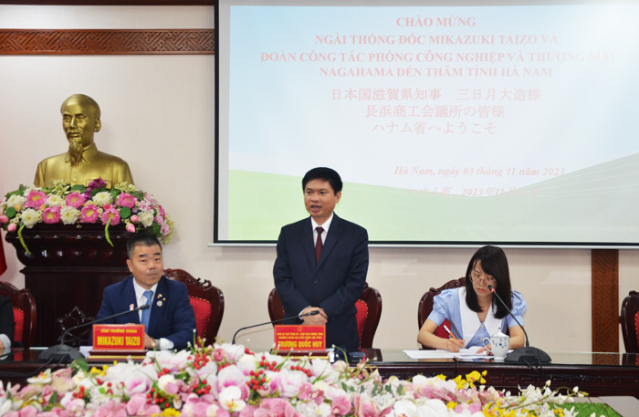 滋賀県知事は、今回のハナム省訪問は、滋賀県と長浜商工会議所の代表団がハナム州の環境投資に非常に関心を持っていることを示す特別な機会であると断言した。